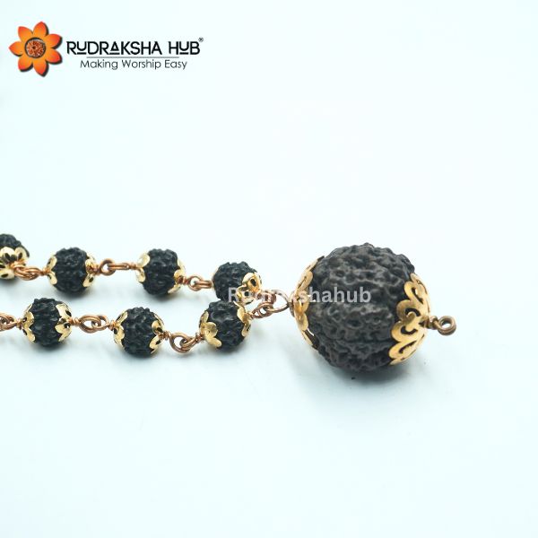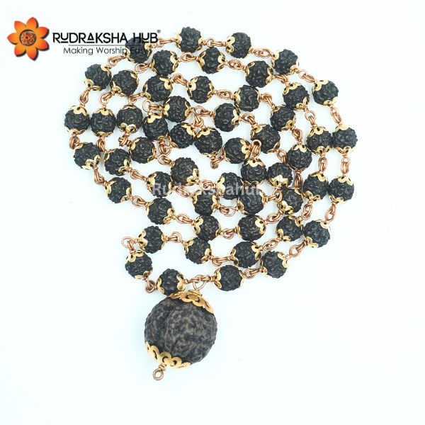 5 Mukhi Black Rudraksha Gurumala Pure Copper Capped Mala is the mala for people who are interested in meditation and self-exploration beyond normal levels, so that they can make their eternal changes positively.