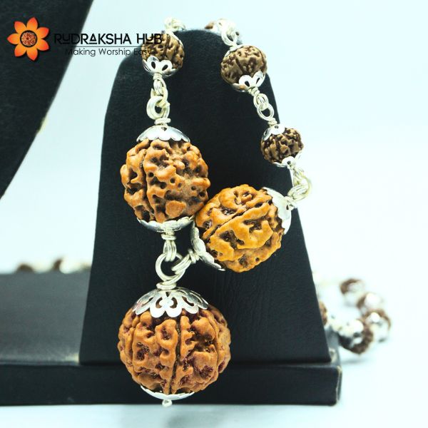 मोतियों का आकार: 3 मुखी रुद्राक्ष प्रत्येक 15-19 मिमी हैं, 7 मुखी रुद्राक्ष 20-24 मिमी है और 5 मुखी रुद्राक्ष प्रत्येक मोती 5-6 मिमी आकार का होता है