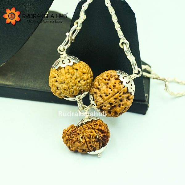 Combination: 6 Mukhi Rudraksha, 7 Mukhi Rudraksha, and Garbha Gauri Rudraksha in pure silver chain