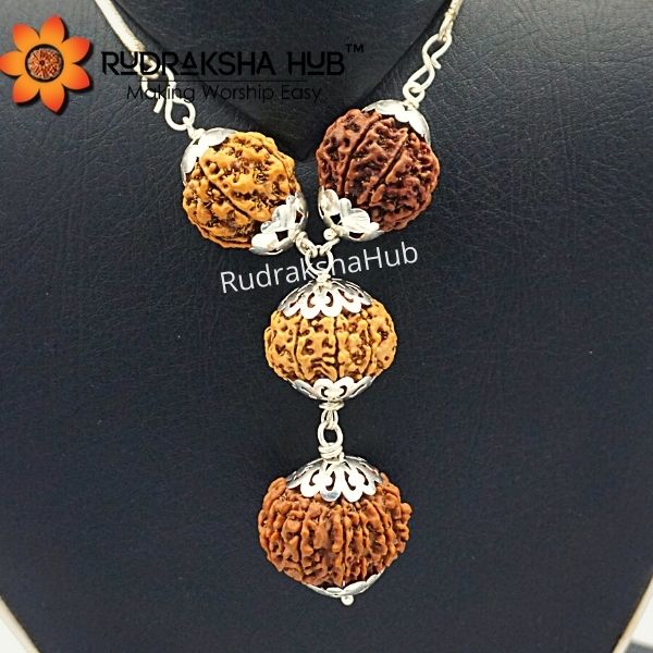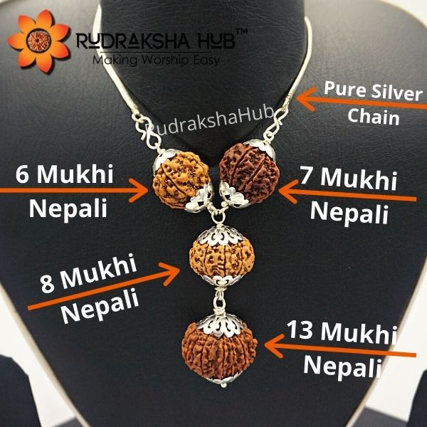 Combination: 6 Mukhi Rudraksha, 7 Mukhi Rudraksha, 8 Mukhi Rudraksha, and 13 Mukhi Rudraksha in Pure Silver Capping