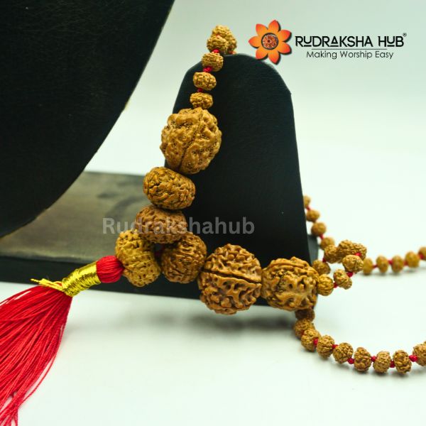 Quantity: one bead each of 2 Mukhi Rudraksha, 3 Mukhi Rudraksha, 7 Mukhi Rudraksha, 8 Mukhi Rudraksha, 9 Mukhi Rudraksha, 10 Mukhi Rudraksha and 11 Mukhi Rudraksha and 108 beads of 5 Mukhi Rudraksha
