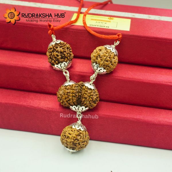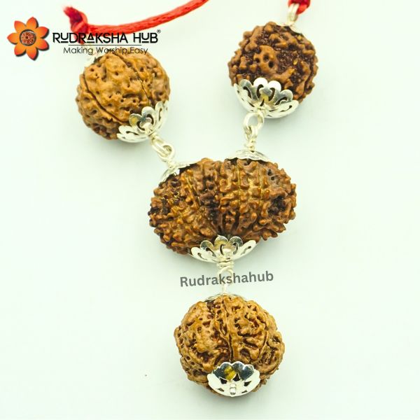 Number of Beads: 1 bead each of 4 Mukhi Rudraksha, 6 Mukhi Rudraksha, 7 Mukhi Rudraksha and 14 Mukhi Gauri Shankar Rudraksha
